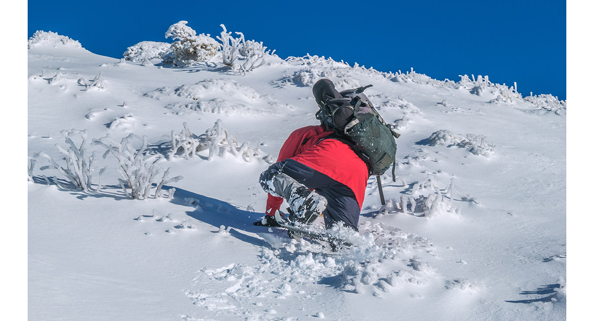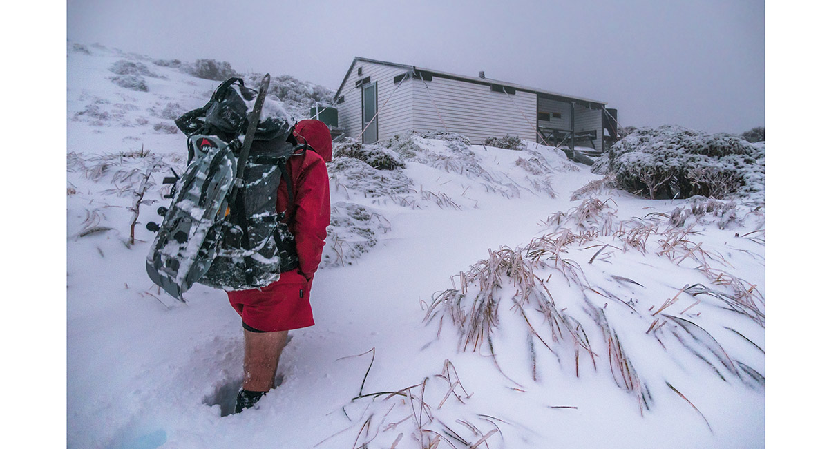 Snow plugging in thigh-deep powder above Jumbo Hut - not even snow shoes helped in some places