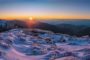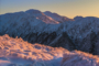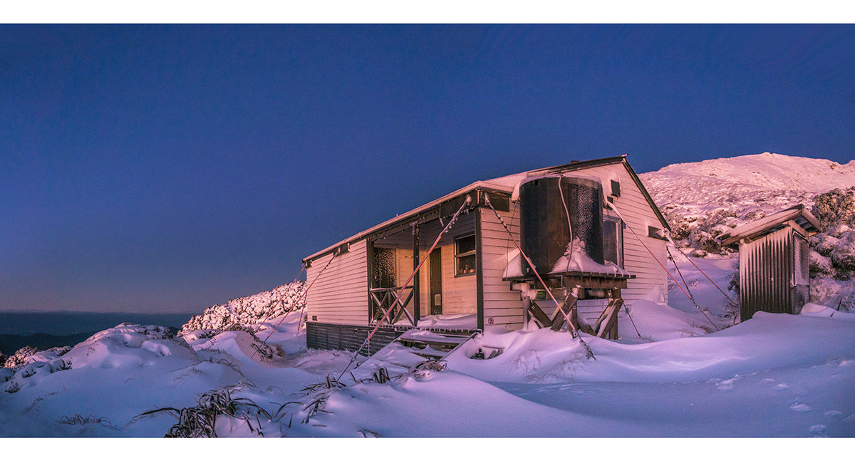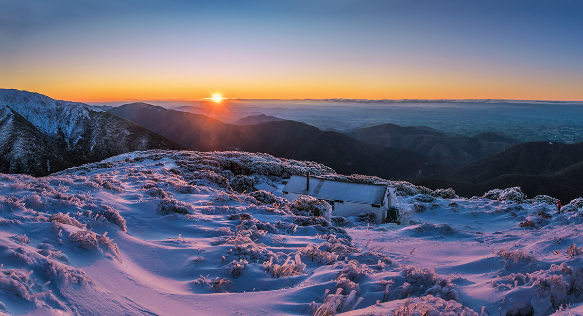 A dawn view above Jumbo Hut, northwest to McGregor, Broken Axe Pinnacles, the Three Kings, Mitre and Baldy ridge