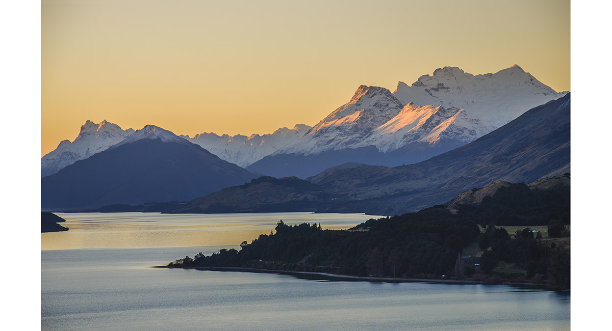 Looking north to Glenorchy and Mt Earnslaw, dusk, July 2014