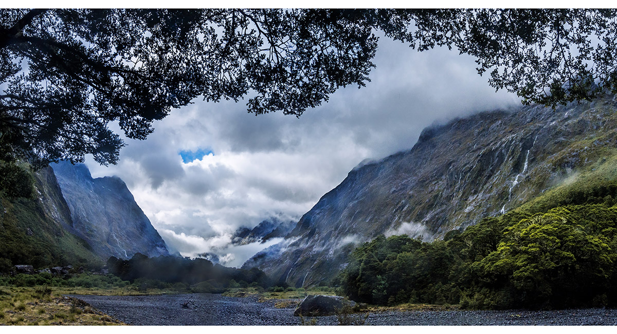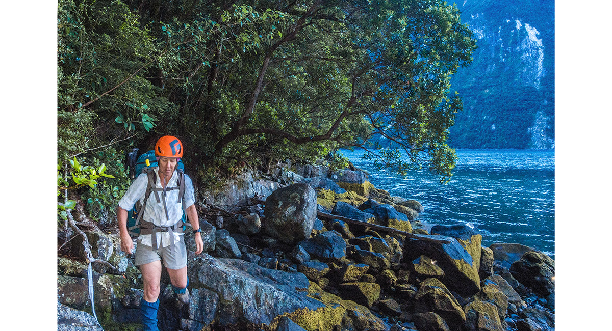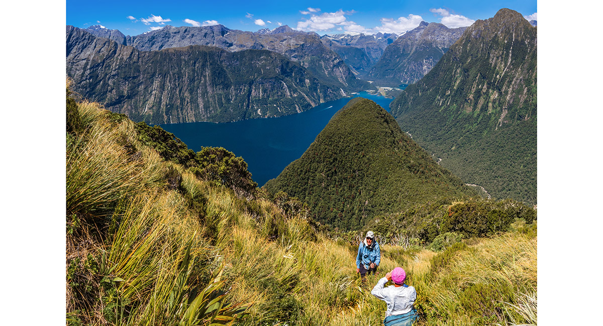 Looking back to Milford Sound before plunging in to the dense Fiordland bush