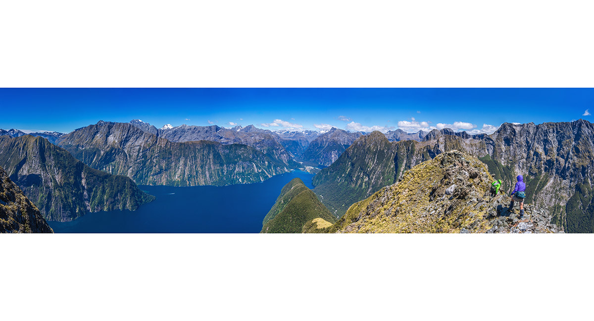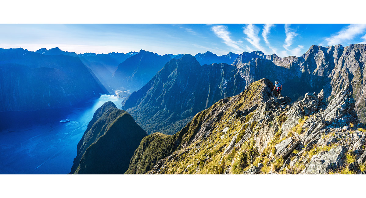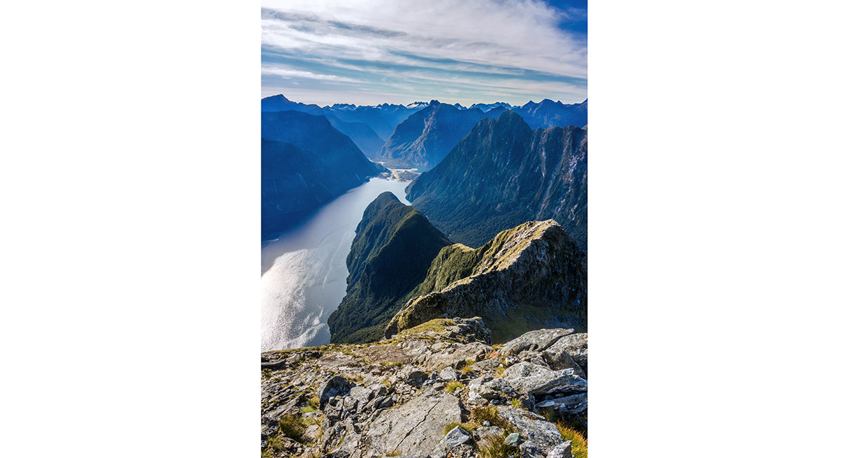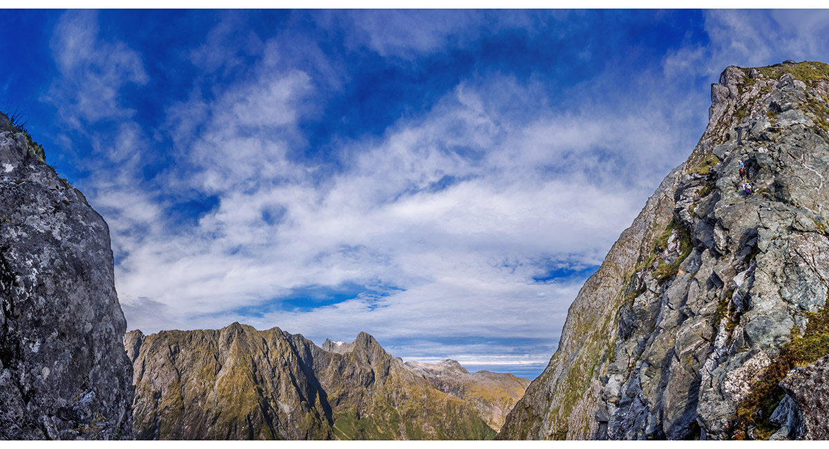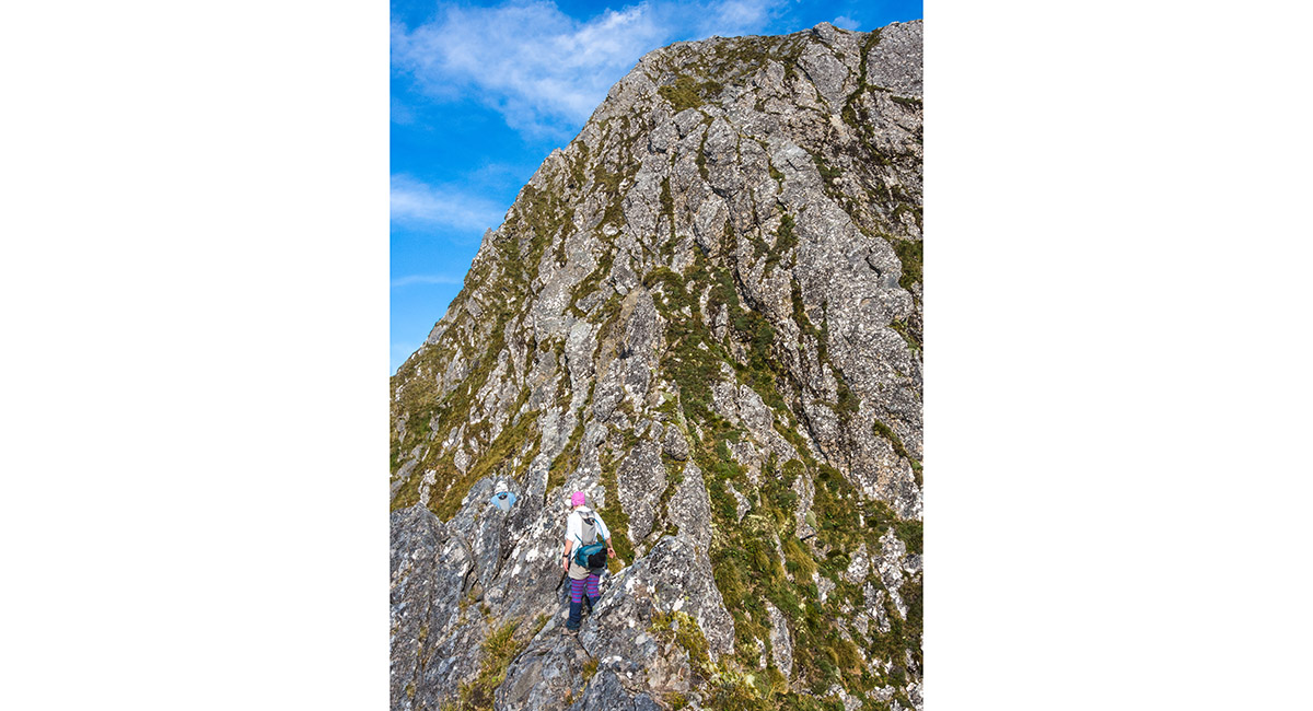 At the base of the horizontal section, looking back down the ridge to Milford Sound