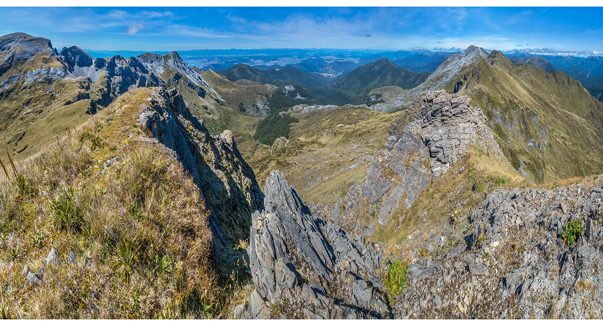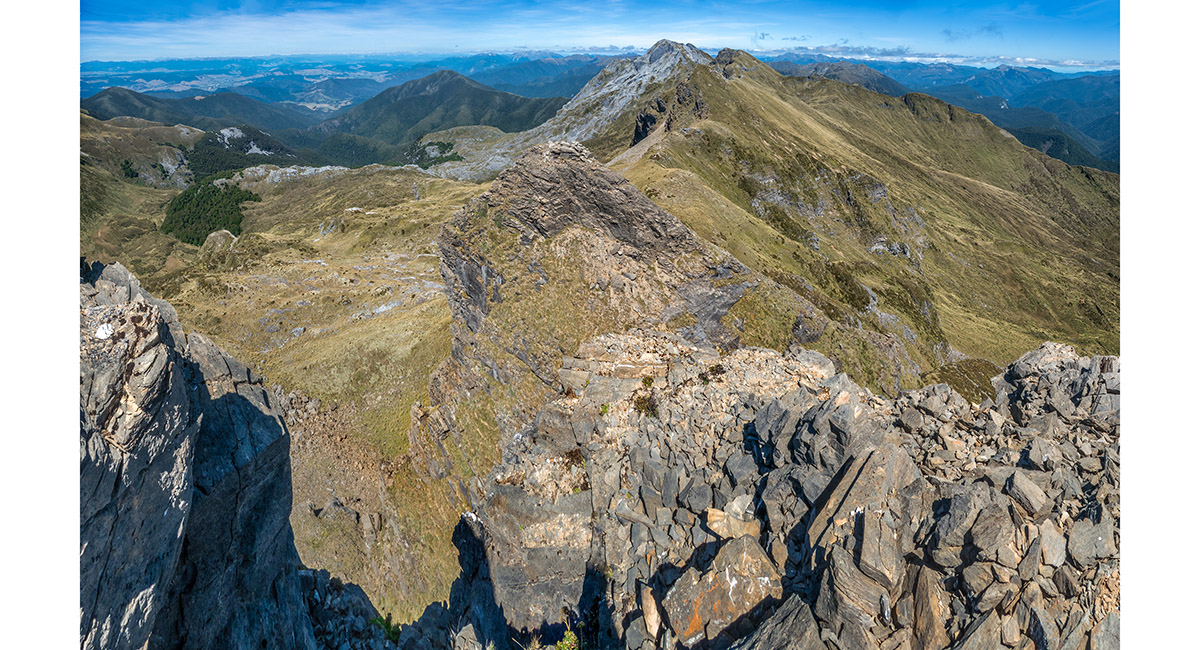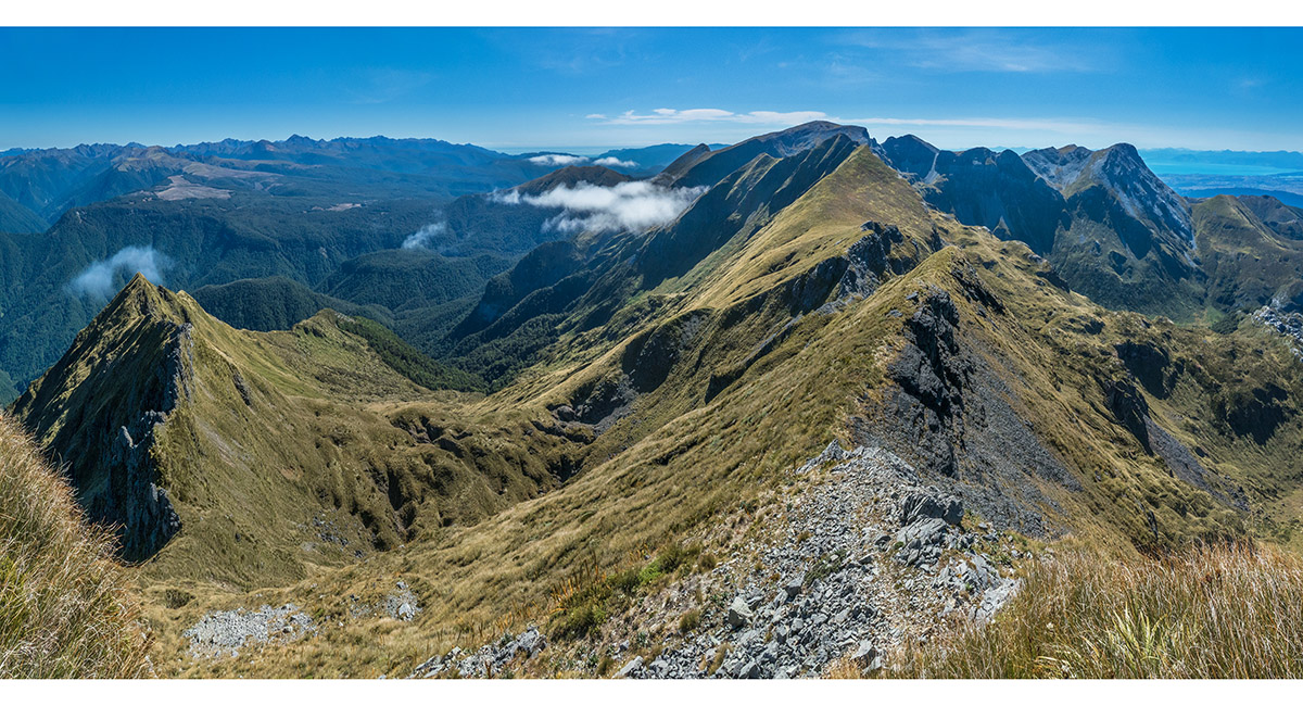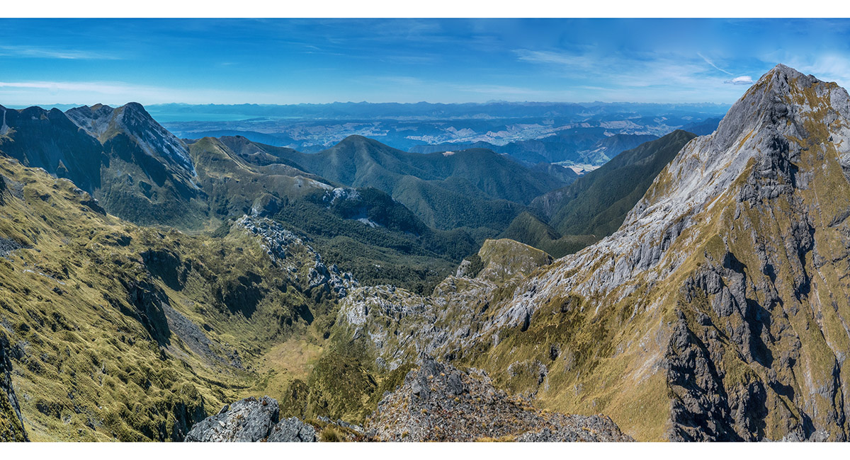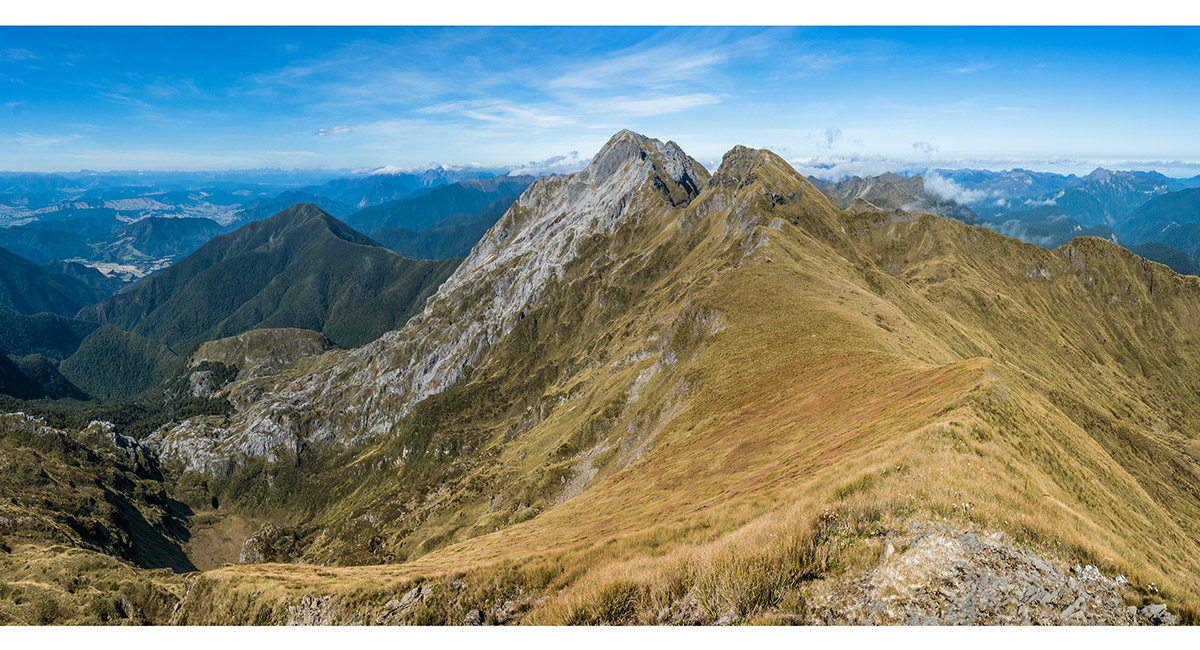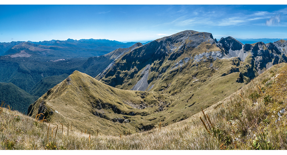 The view northeast, back along my ridge route to distant Mt Arthur