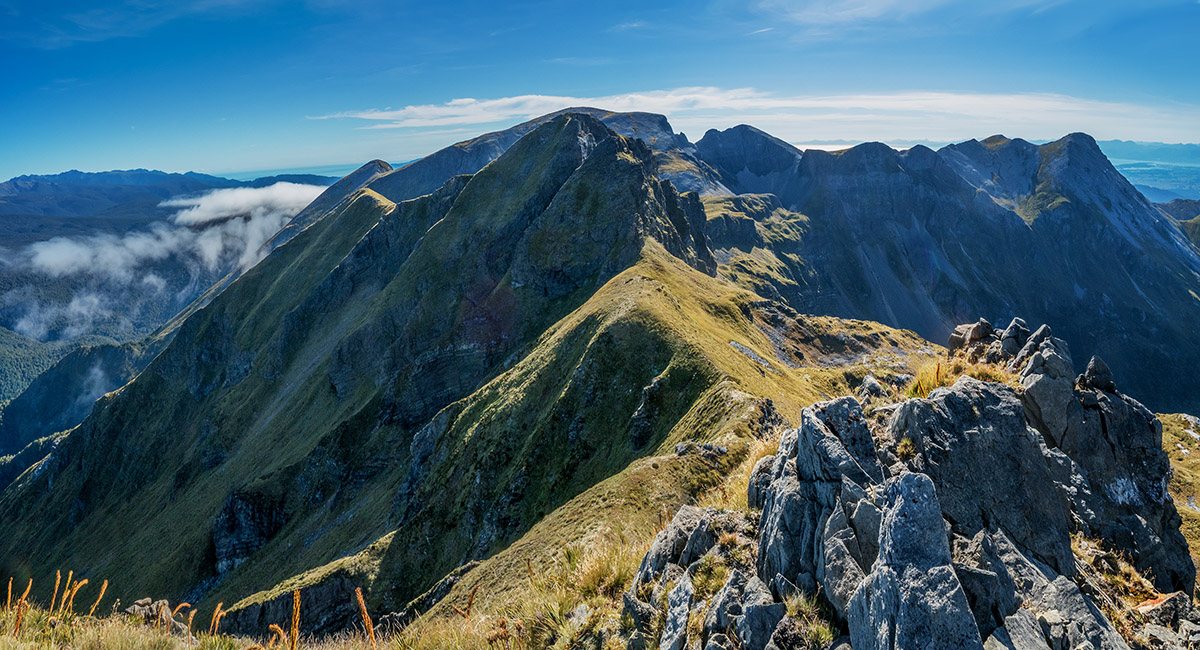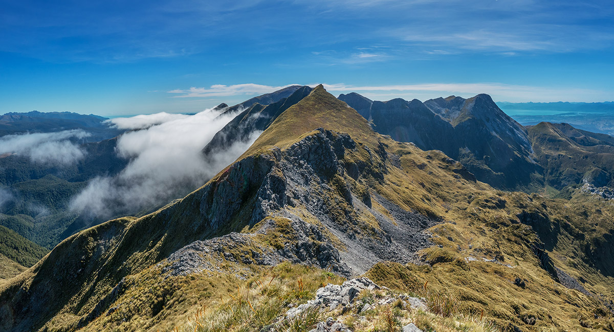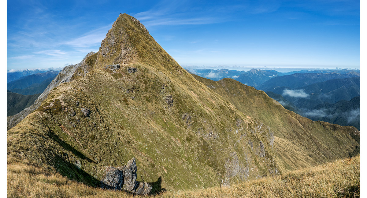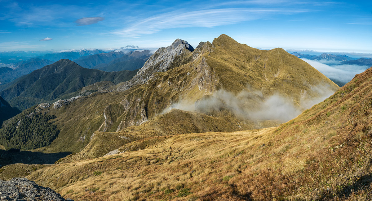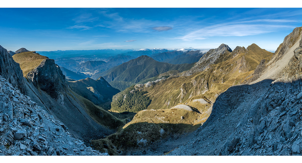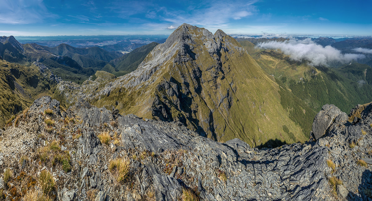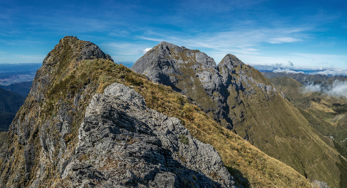 The view northeast, back along my ridge route to distant Mt Arthur