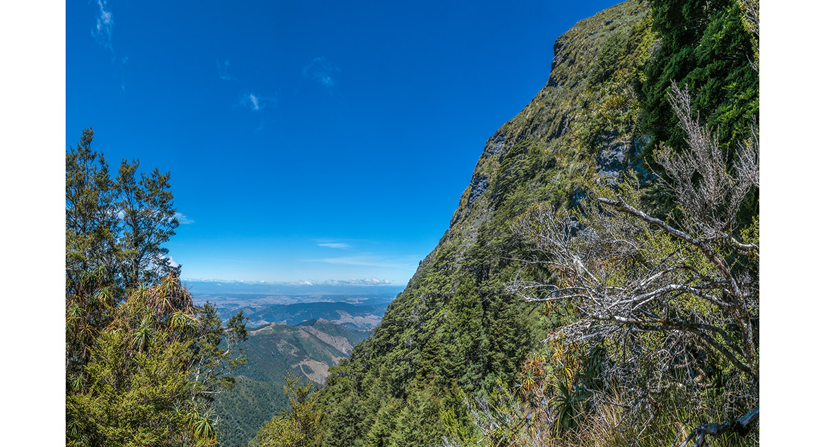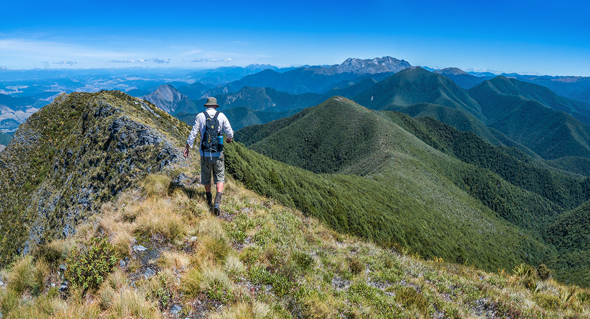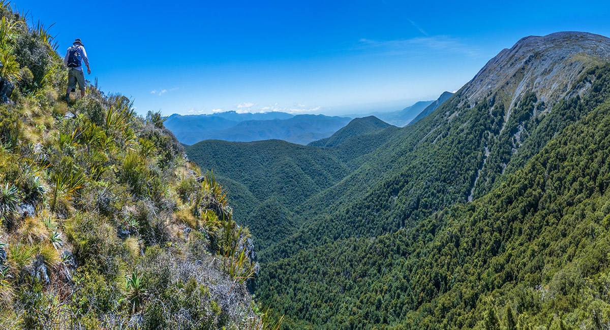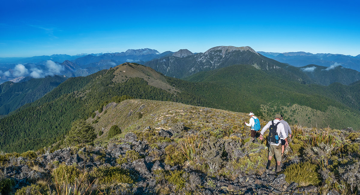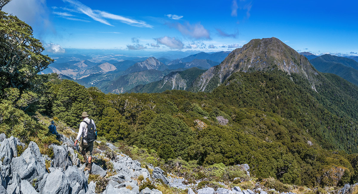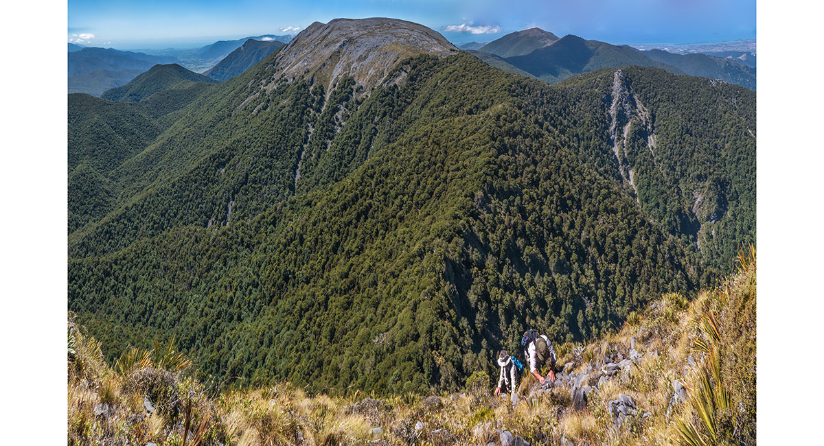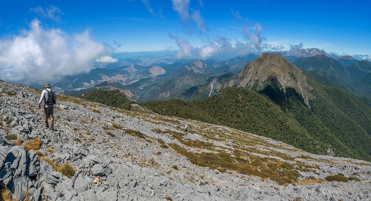 Departing Mt Campbell (1,330m), with Hoary Head right of centre. Click for more of this route to Hoary Head