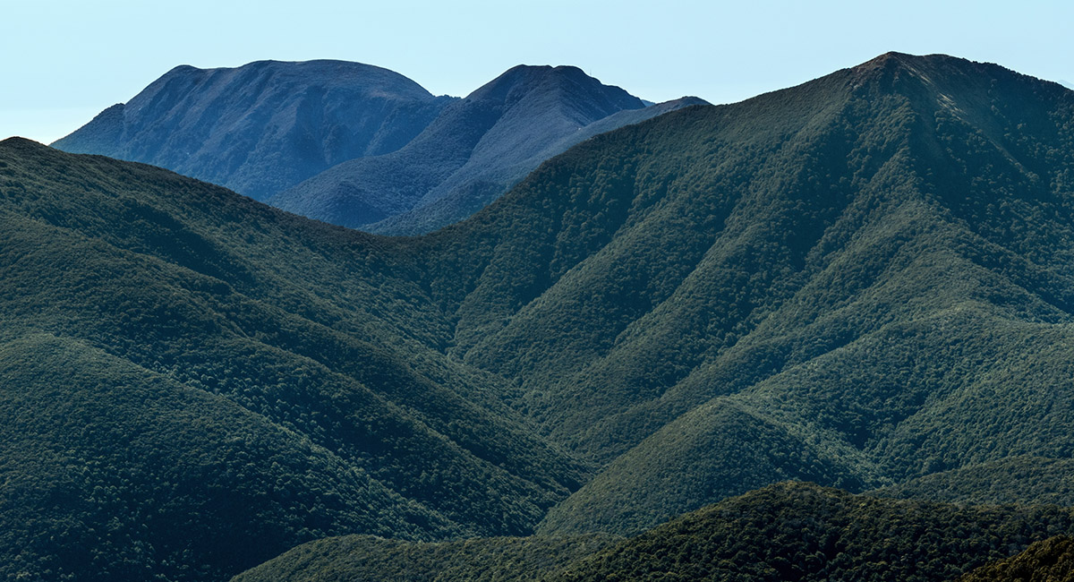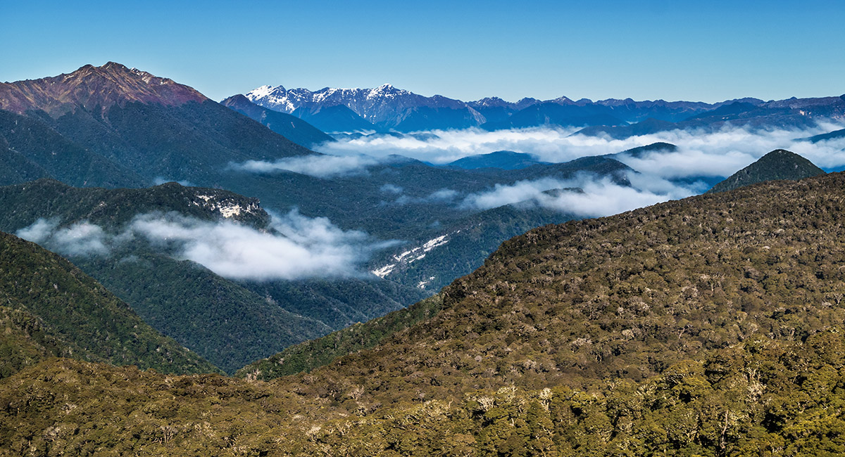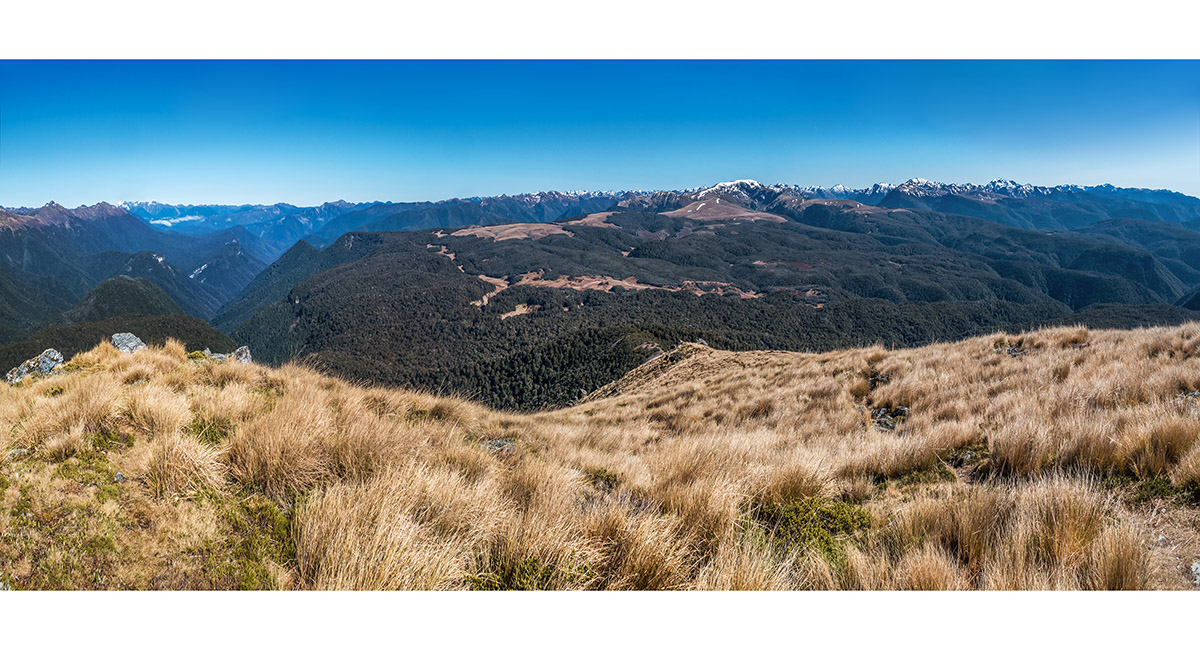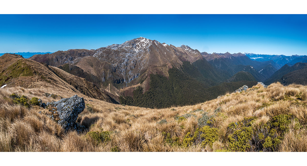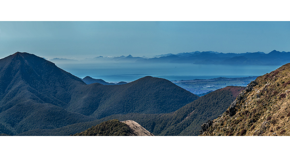 Gordon's Pyramid summit view east to Tasman Bay and the Richmond Range, with Lodestone left