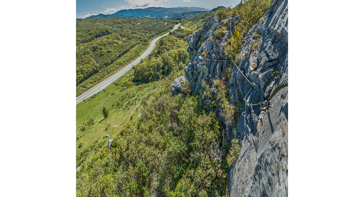 A view along a section of the first Via Ferrata in the Tasman region, opened in December 2024 - loads of fun