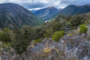 A view east along the Lewis Tops Track. Gloriana Peak (2,218m) and Faerie Queene (2,236m) are on the left skyline