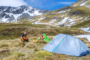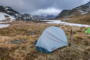 Back at our camp site with the weather finally clearing. The west ridge stretches left from centre to the summit of Mt Technical