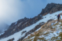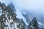 Looking east along the southwest face, at about 1,700m. The summit is in cloud top left