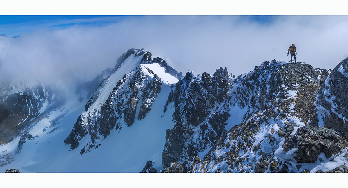 Back at our camp site with the weather finally clearing. The west ridge stretches left from centre to the summit of Mt Technical