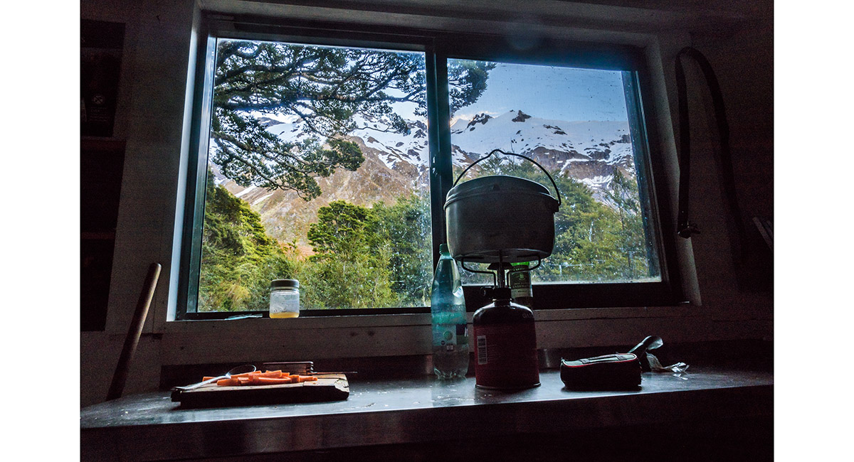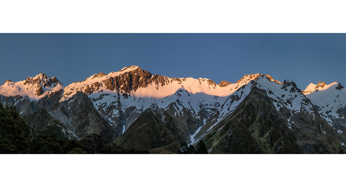 Dawn view east to the Naumann Range, from Main Huxley Forks Huts
