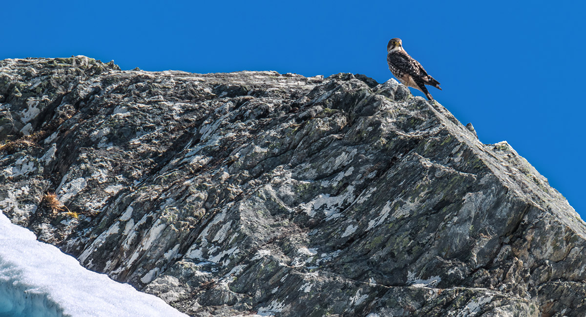 A native falcon / kārearea checks us out at about 1,800m, beneath Mt Mackenzie