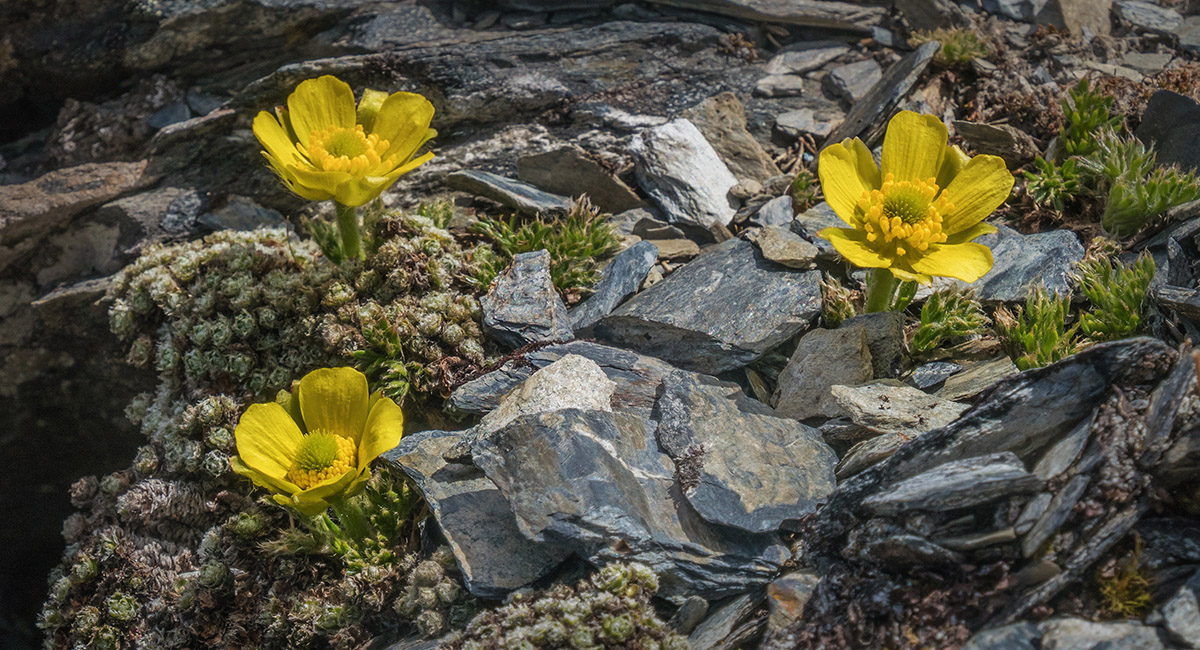 A view below the south face of Mt Mackenzie, at about 2,000m, with Mt Strauchon far right
