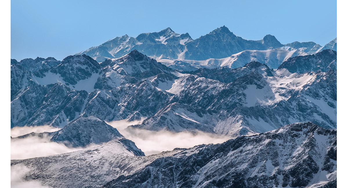 A section of the Travers Range, with Mt Cupola far left, from above Cupola Hut