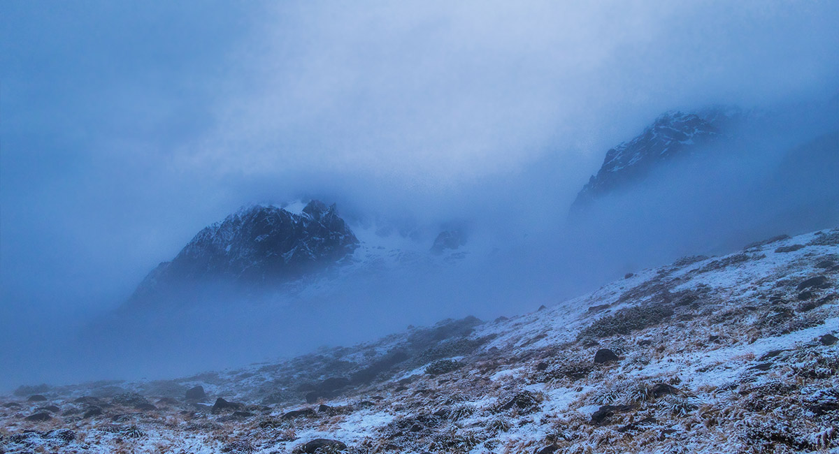 Mount Cupola (left), shrouded in cloud, above Cupola Hut