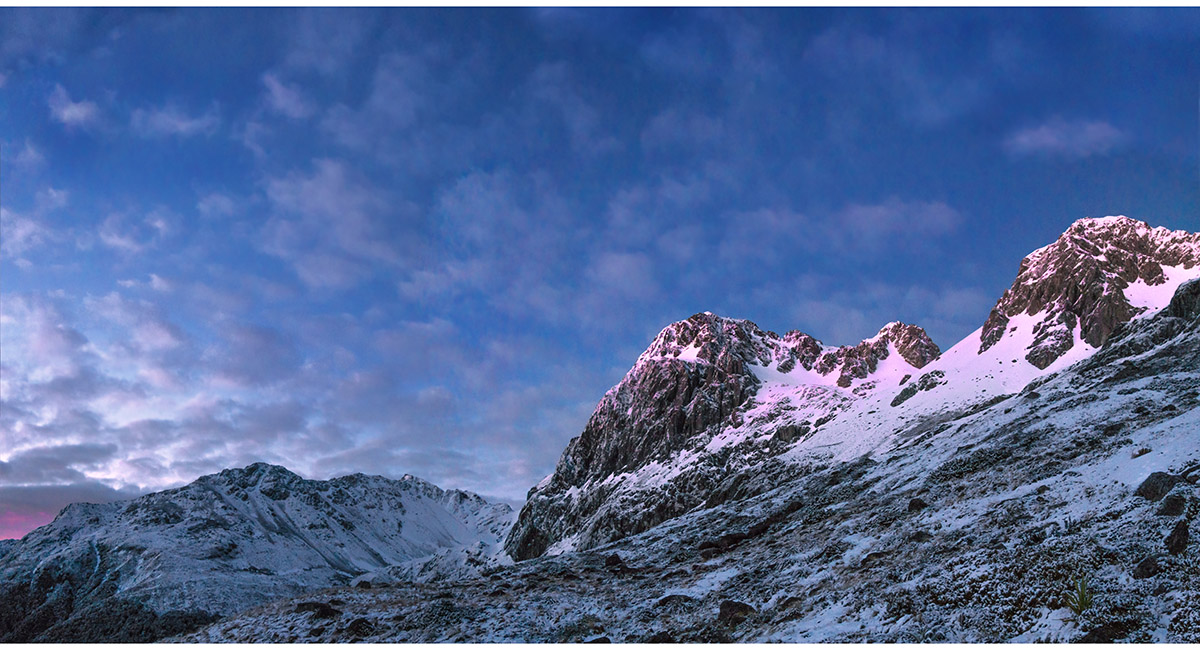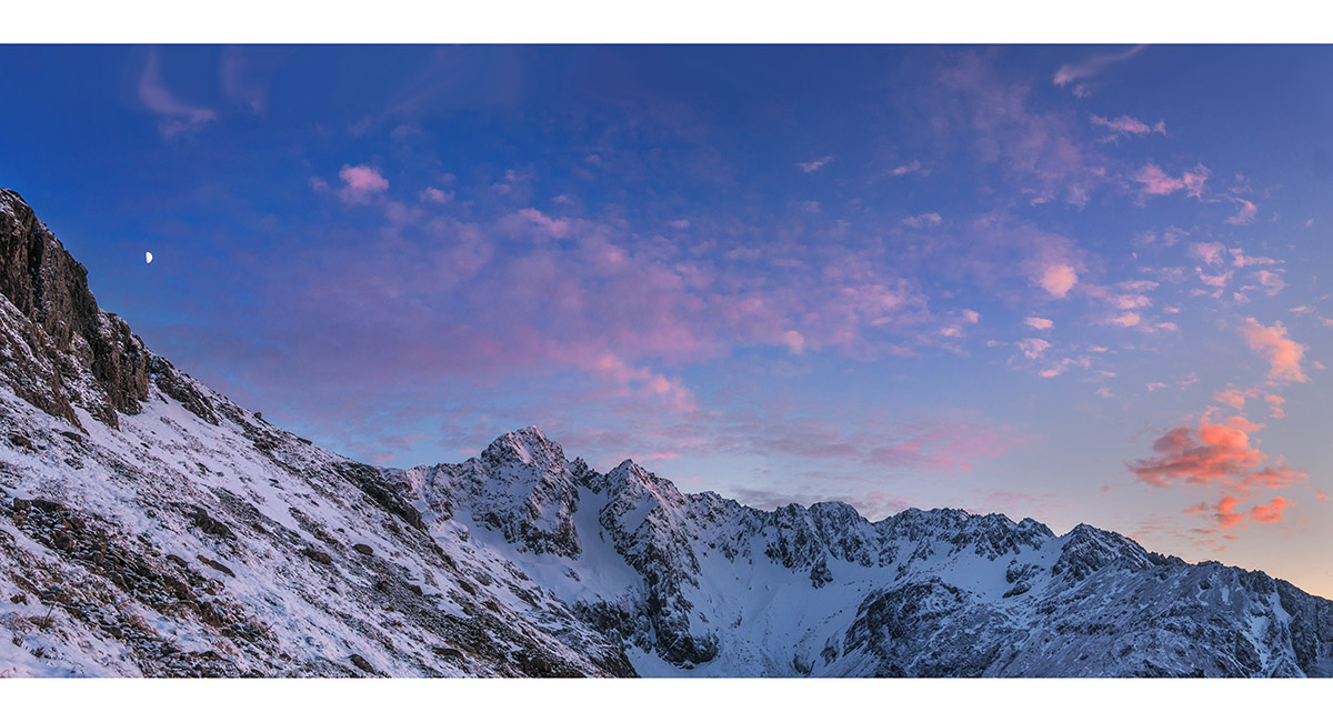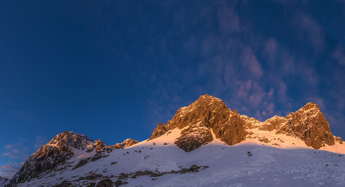The north face of Mount Cupola (centre), dawn, above Cupola Hut