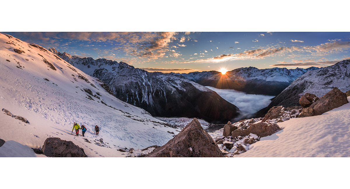 The view east at sunrise, from about 1,800 metres, en route to Mt Cupola
