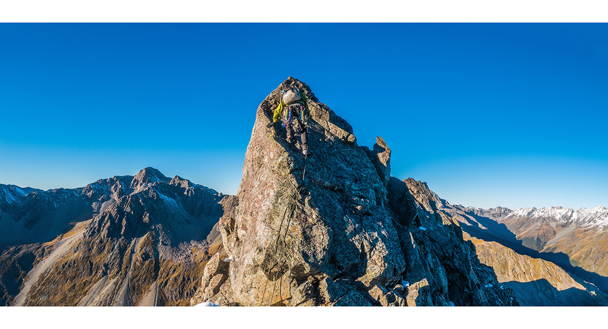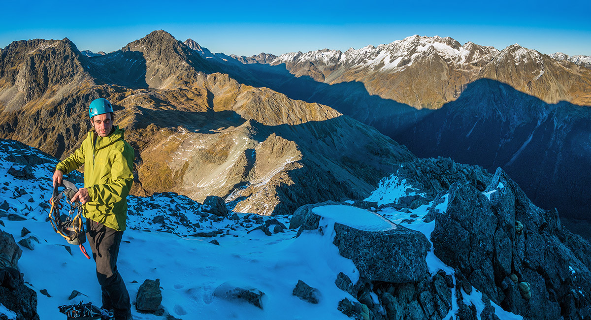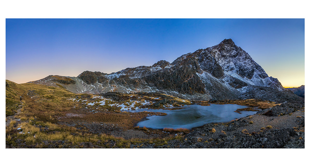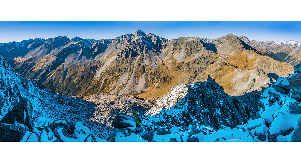The South Ridge and face of Mt Travers, viewed from Tavers Saddle (1,787m) at dawn