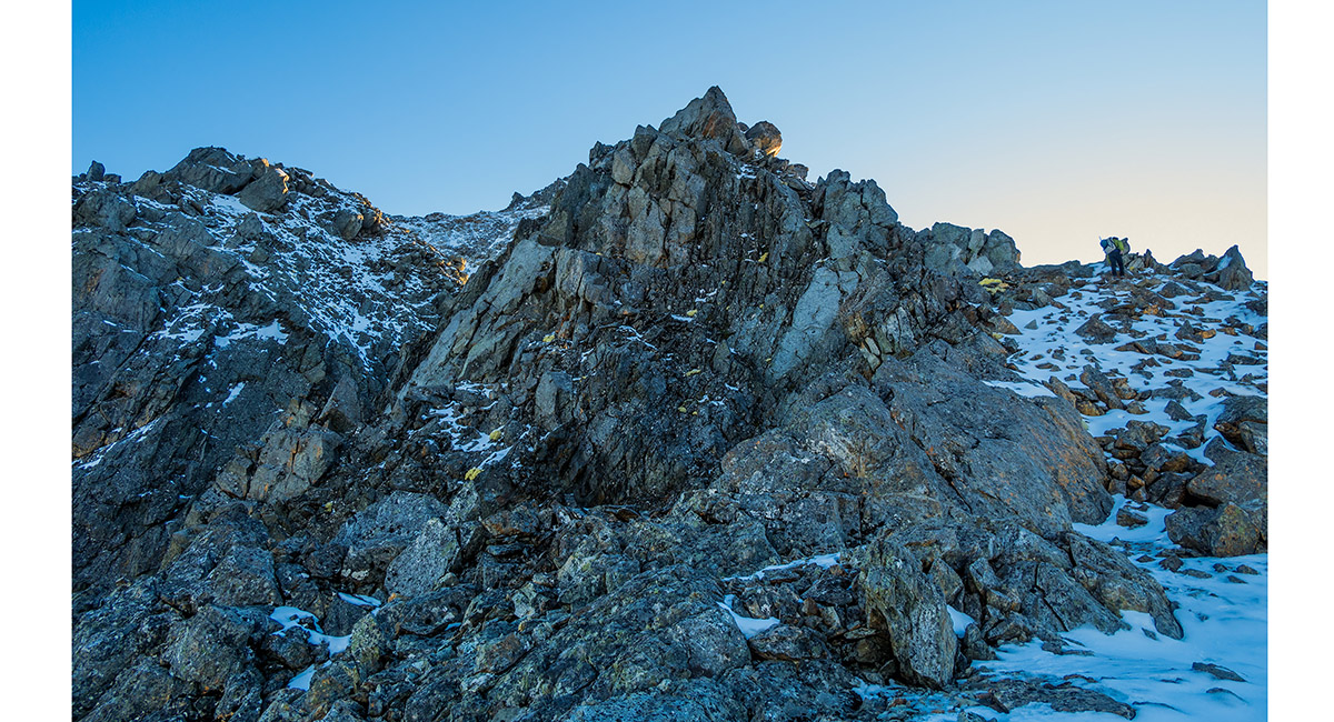 The beginning of a large (and longer than expected) blocky buttress before the notch