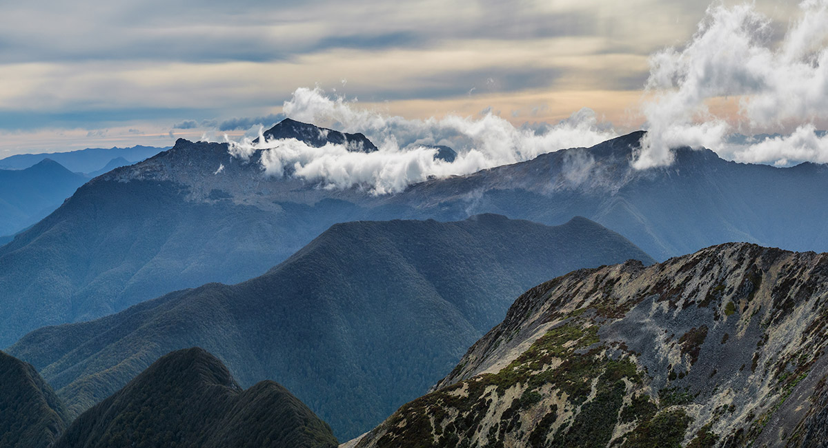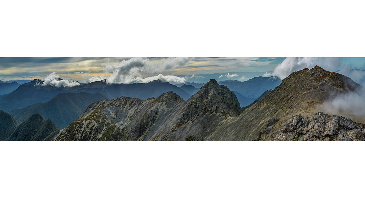 Summit view south to the inland Kaikoura mountains - Tapuae-o-Uenuku far left