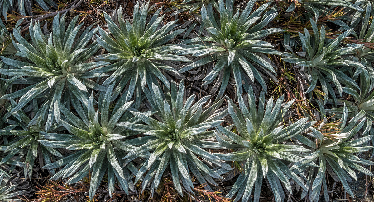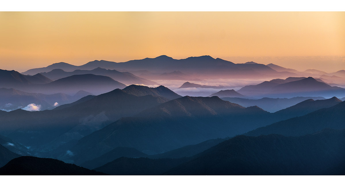 Fishtail summit view at dawn northeast, looking to Mt Royal (1,365m, centre) and Pt1330 (left)