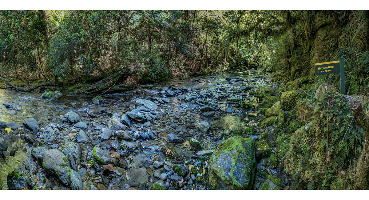 At the crossing of Pine Valley Stream (300m), at the base of the Mt Fishtail Route