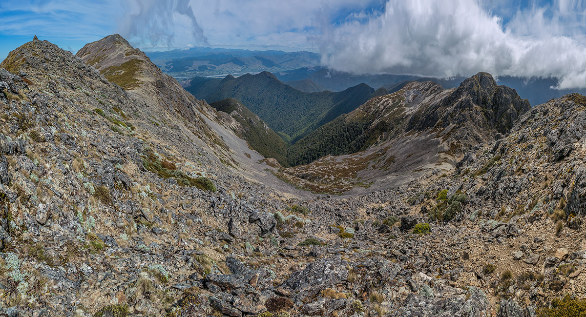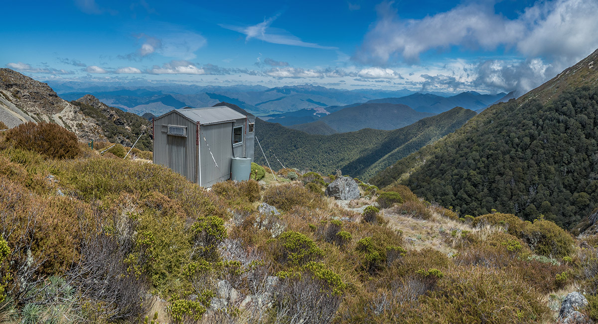 Fishtail Hut (1,350m), looking south to Wairau Valley