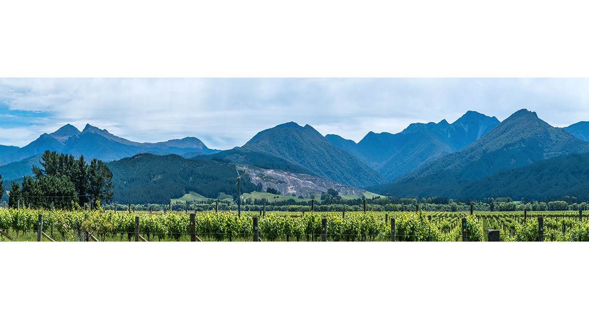 A view north from SH63, across Wairau River to Mt Richmond and Johnston Peak (far left), Mt Fell, and Mt Fishtail (right)