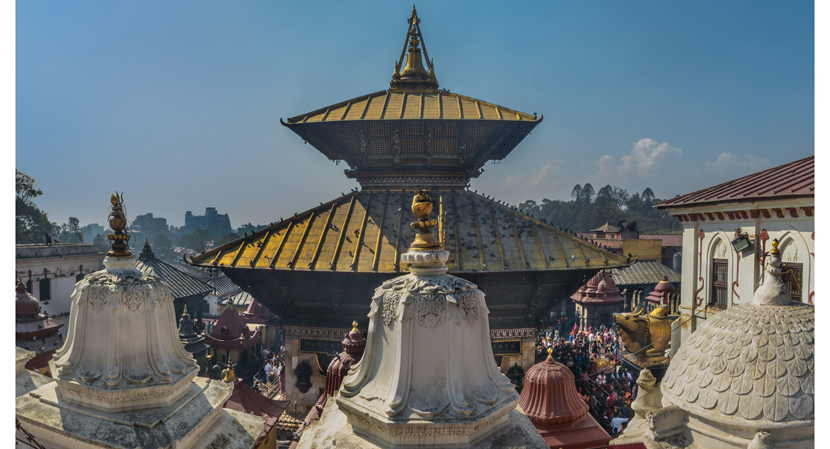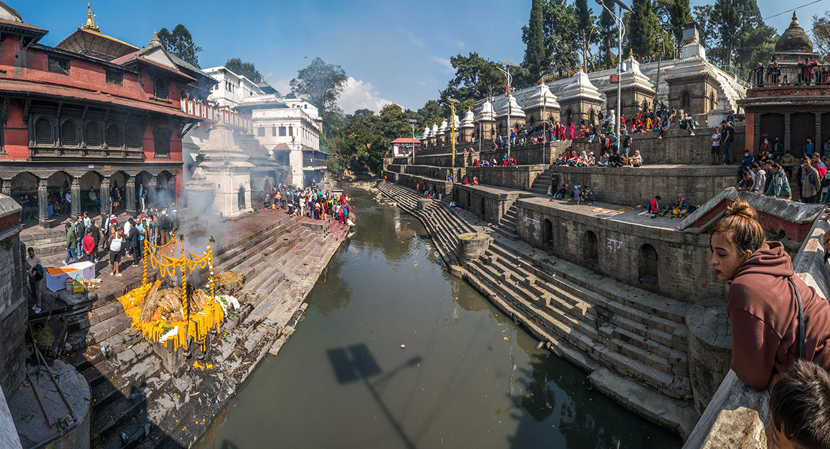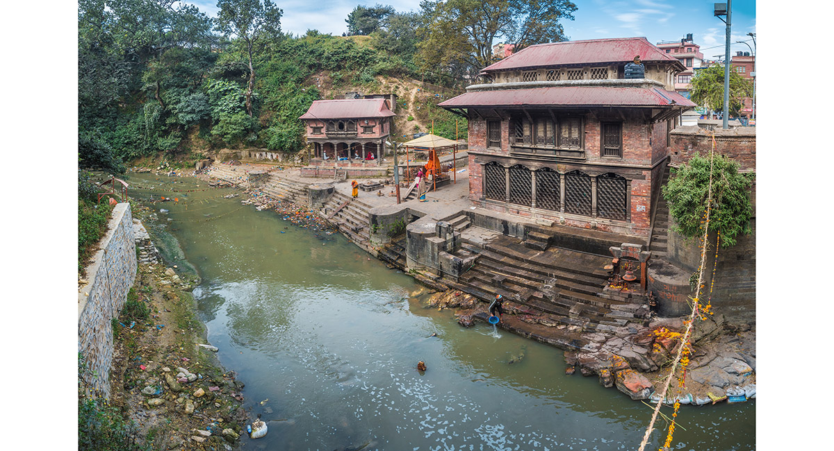 A view of Pashupatinath from one of bridges spanning the Bagmati River
