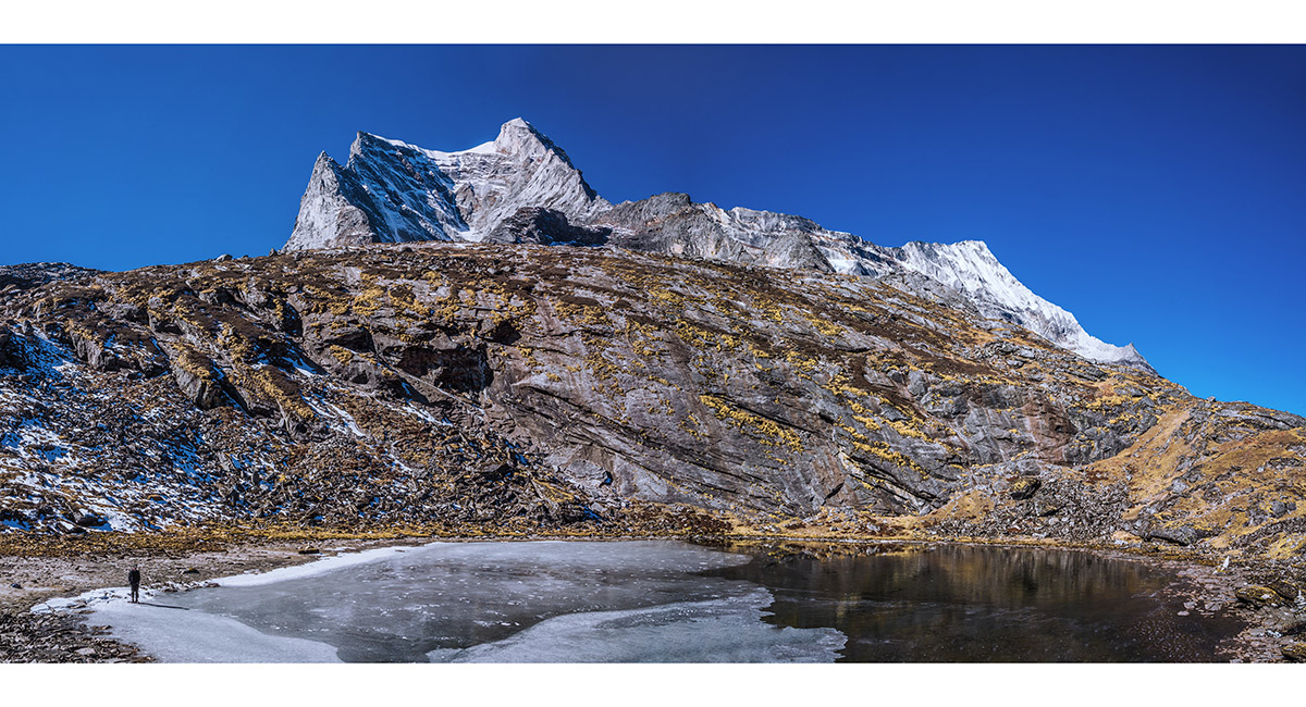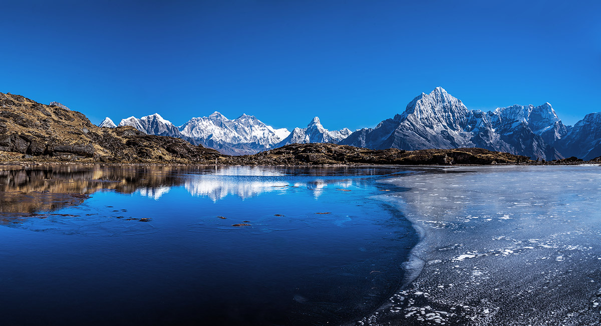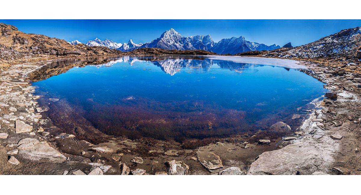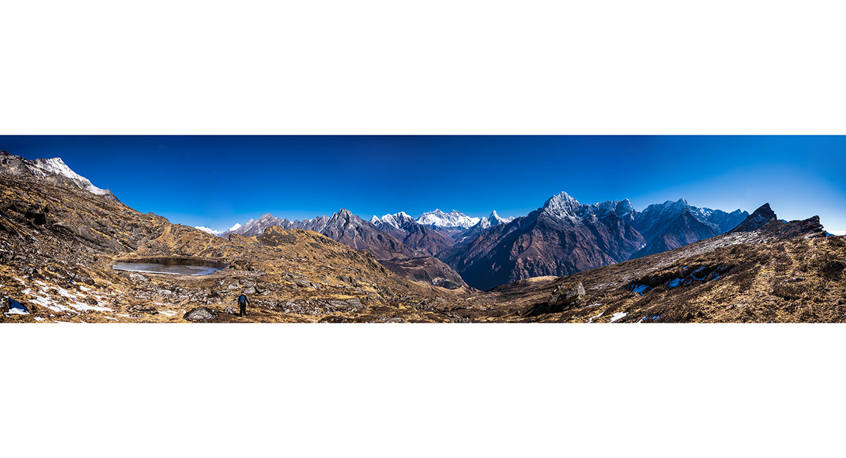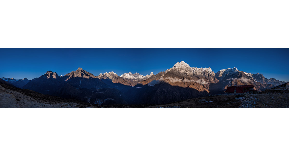 The Khumbu unfolded from near Kongde Lake (4,500m) - spanning Kwangde (left) across to Kusum Kanguru (right)