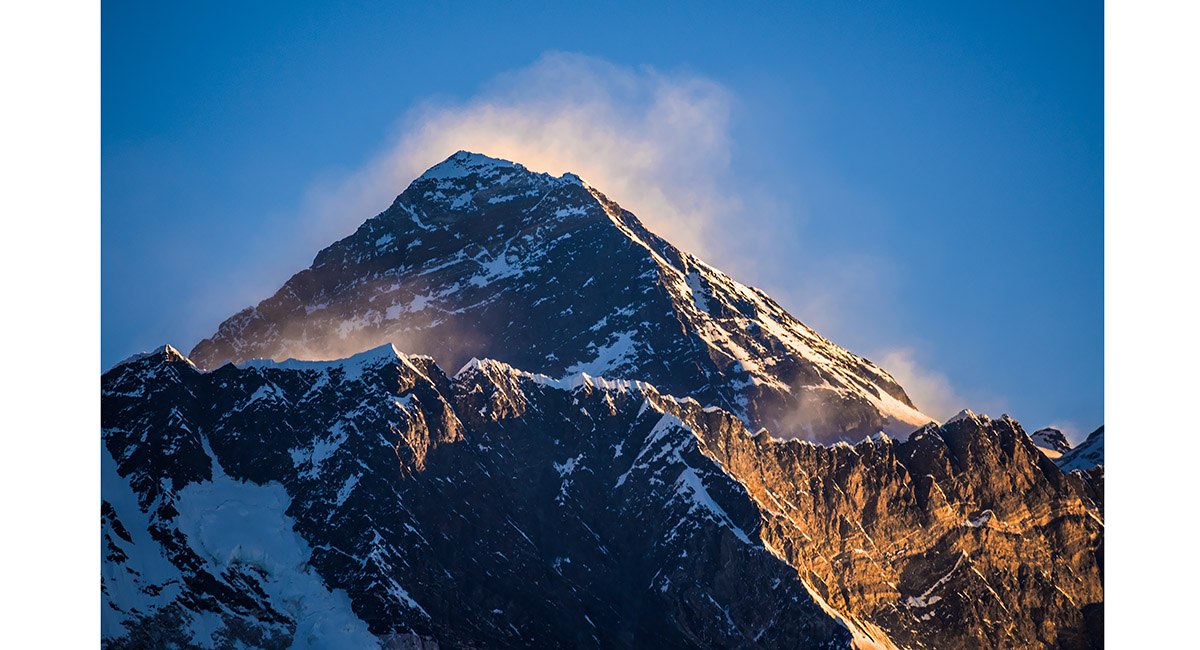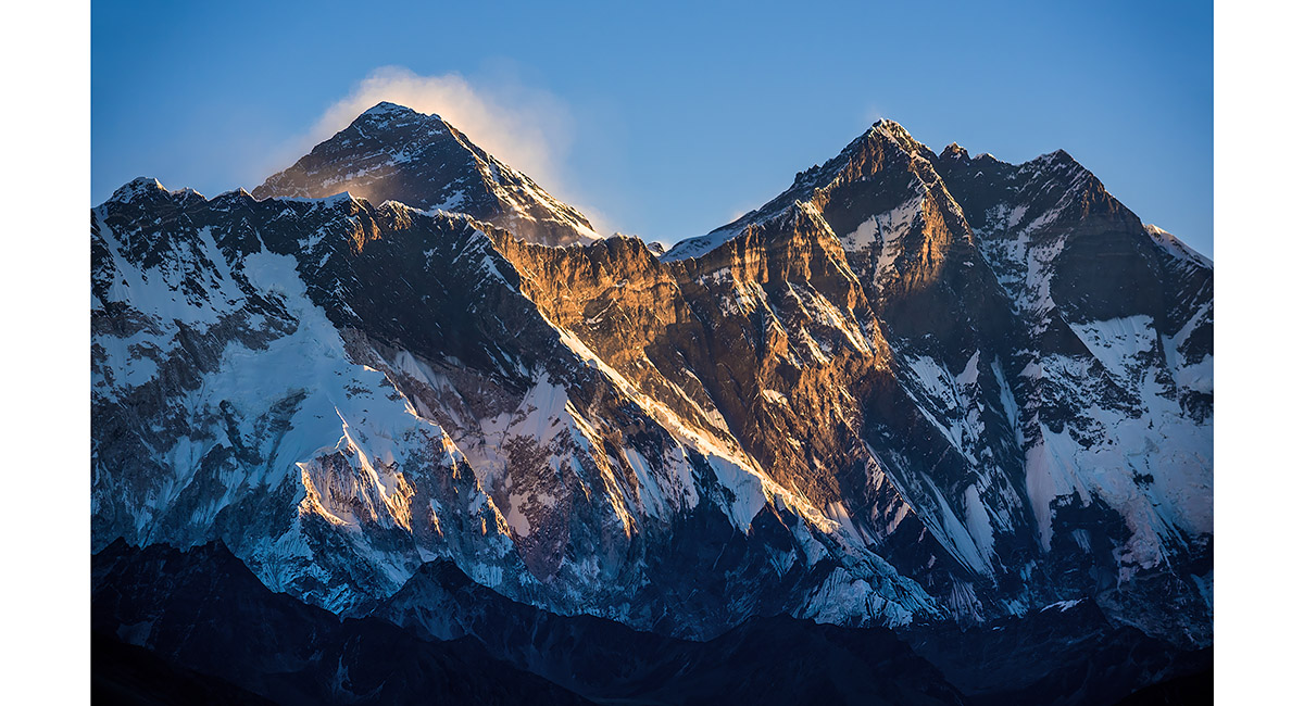 The summit of Chomolungma and a section of the Nuptse wall, dawn
