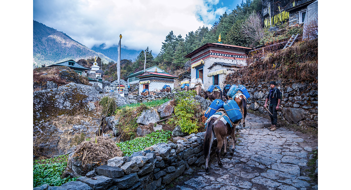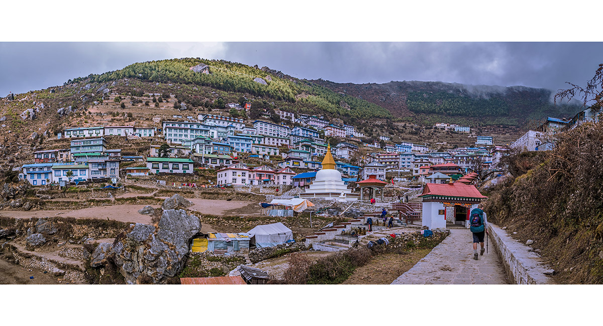 Entering Namche Bazaar from the lower southern end at about 3,400m. The upper part of the town is about 100 metres higher