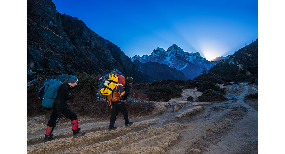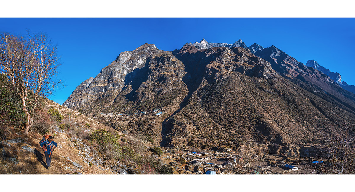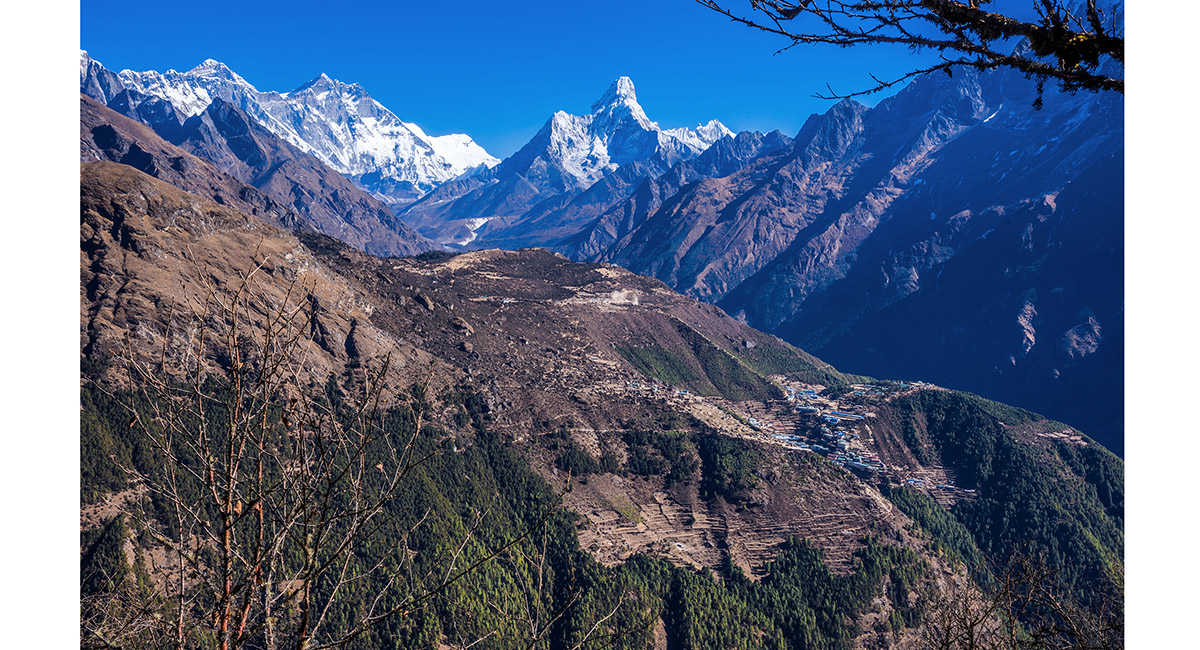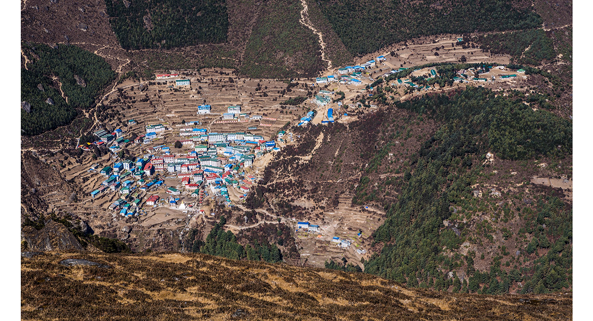 Khumbila to Kusum Kanguru, with Namche Bazaar in the foreground