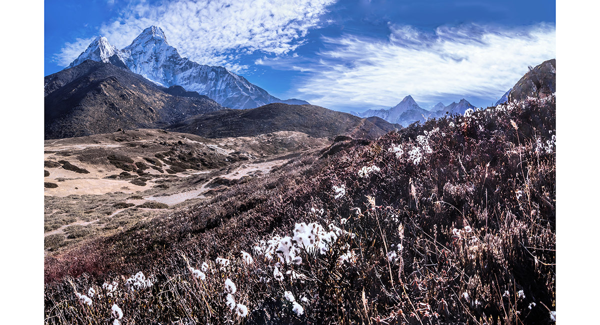 Ama Dablam ahead, with Mulan Phulan (6,573m) at right