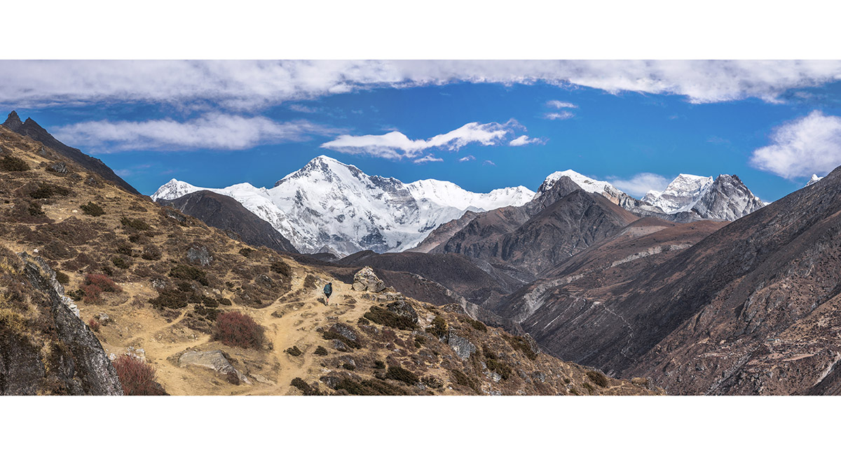 A view north to Cho Oyu (8,201m) from near Lhabarma (4,320m), on the trail to Gokyo