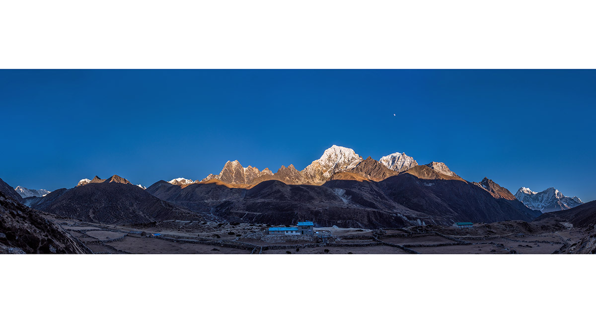 Viewed from Pangka at dusk (4,480m), from left - Cho Oyu, Kangchung, Cholatse, Taboche, Kangtega and Thamserku