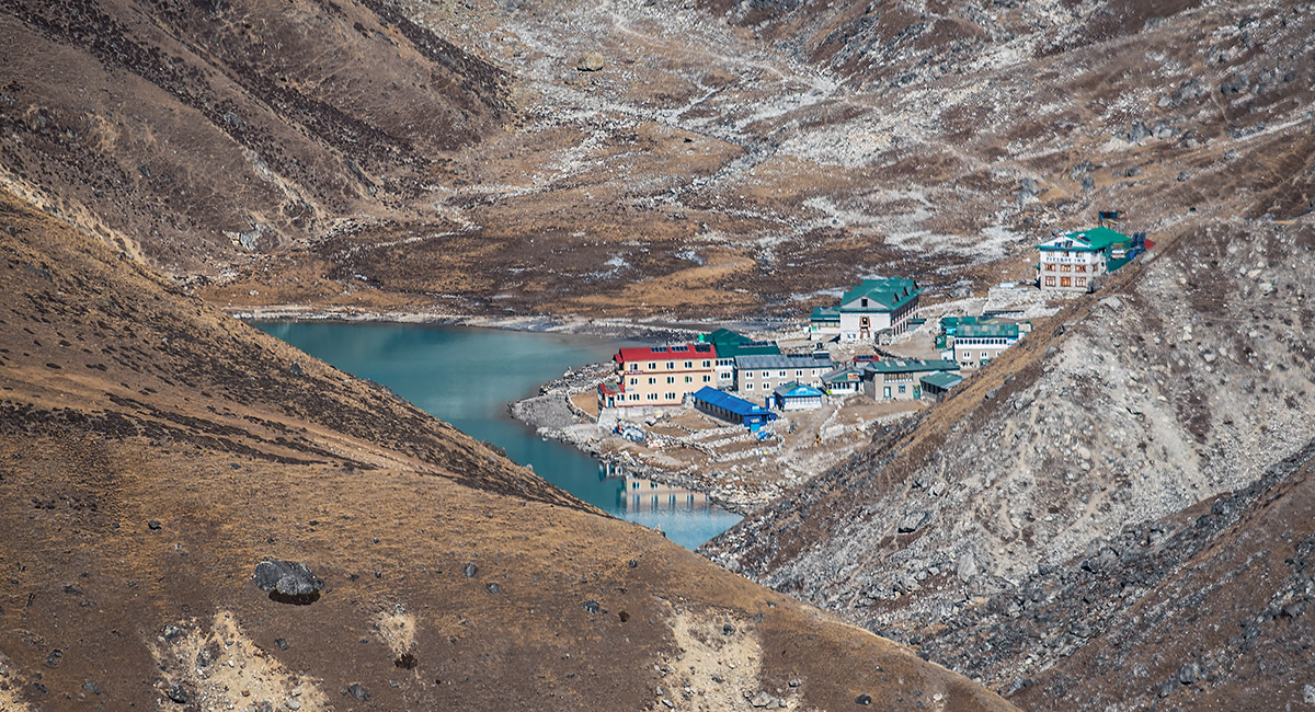 Gokyo (4,750m), viewed from the Everest Wifi transmitter