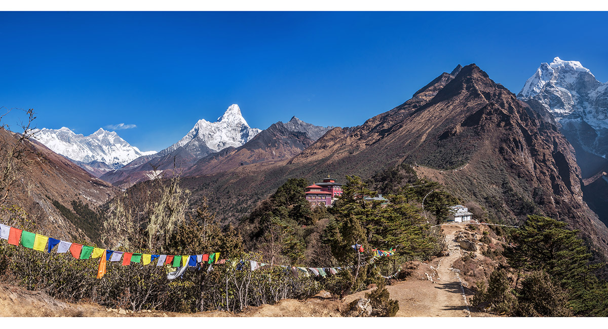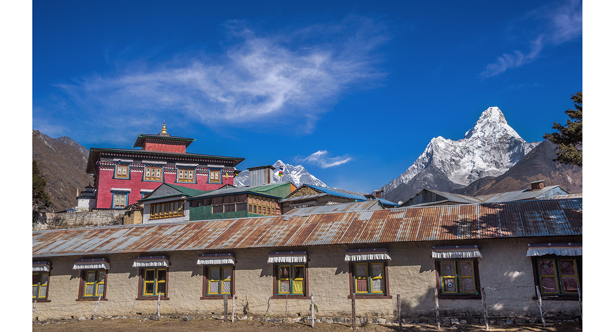 Tengboche Gompa and Ama Dablam, with Lhotse peaking over at centre
