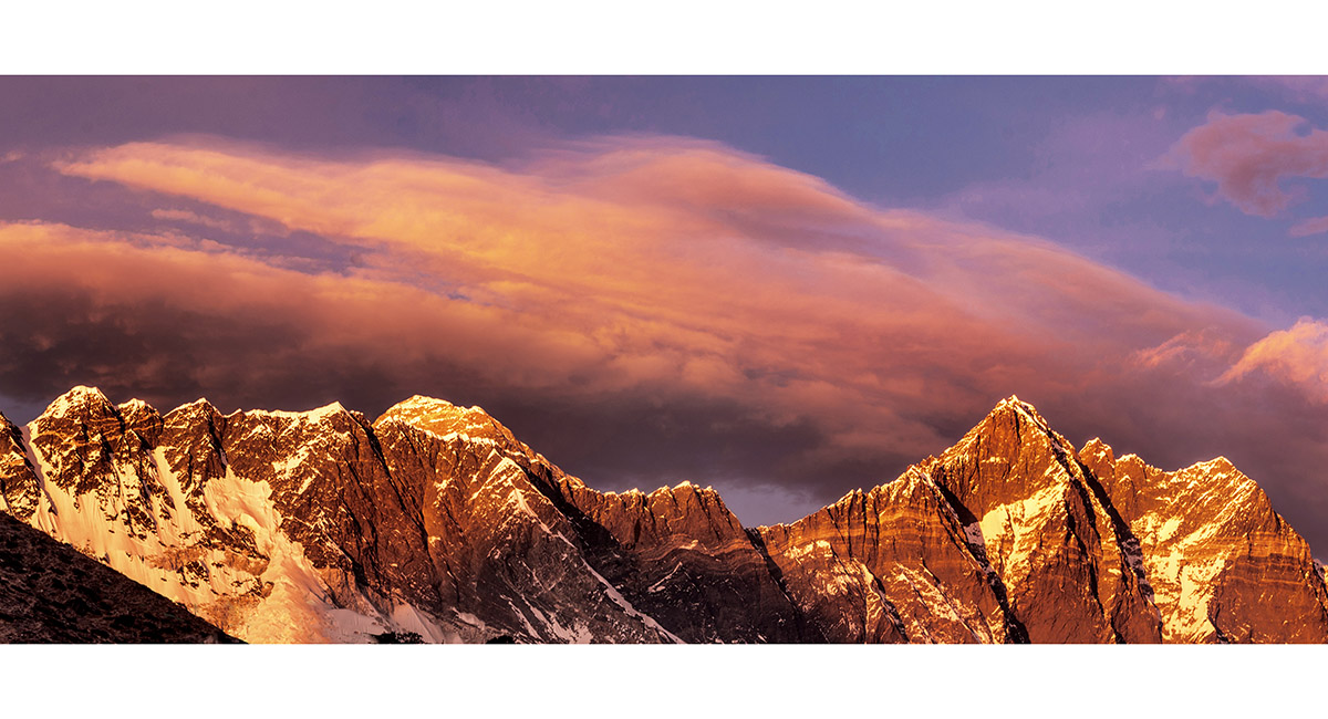 Sunset over the Everest Group, viewed from Pangboche > Ama Dablam Base Camp