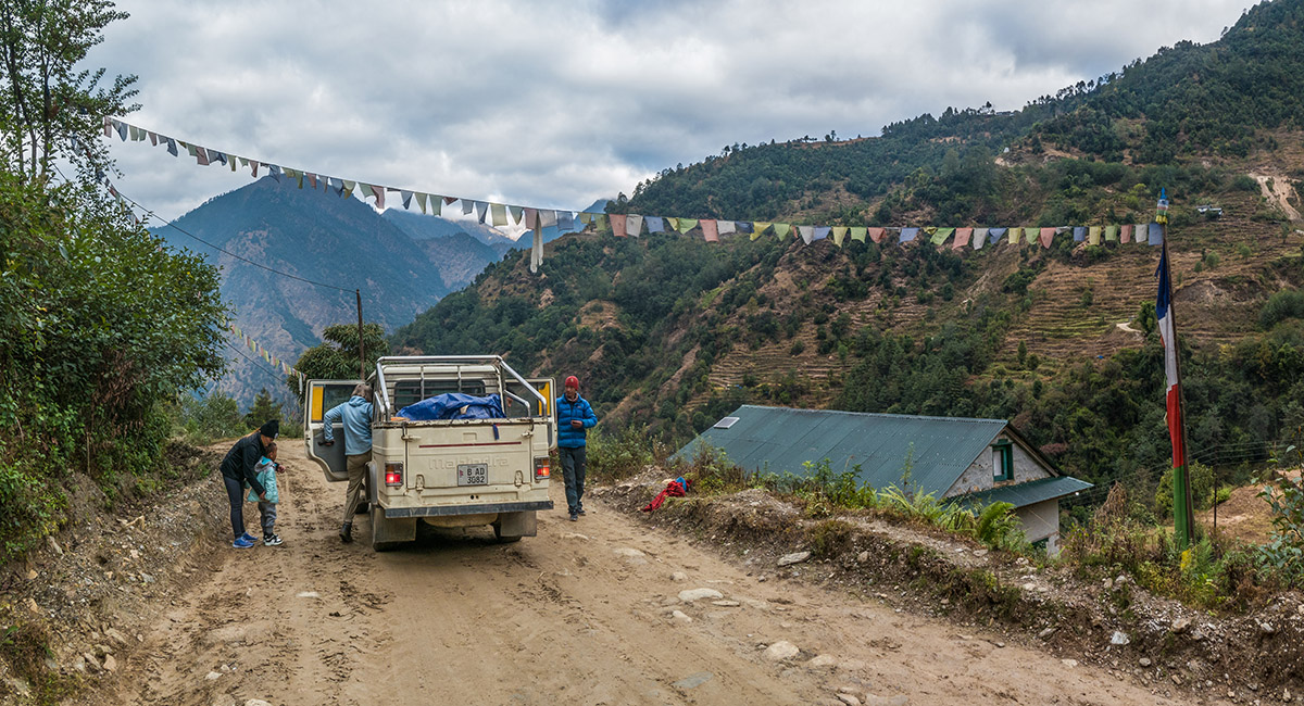 At Phaplu airstrip (2,500m). Another hour in the jeep got us to Junbesi